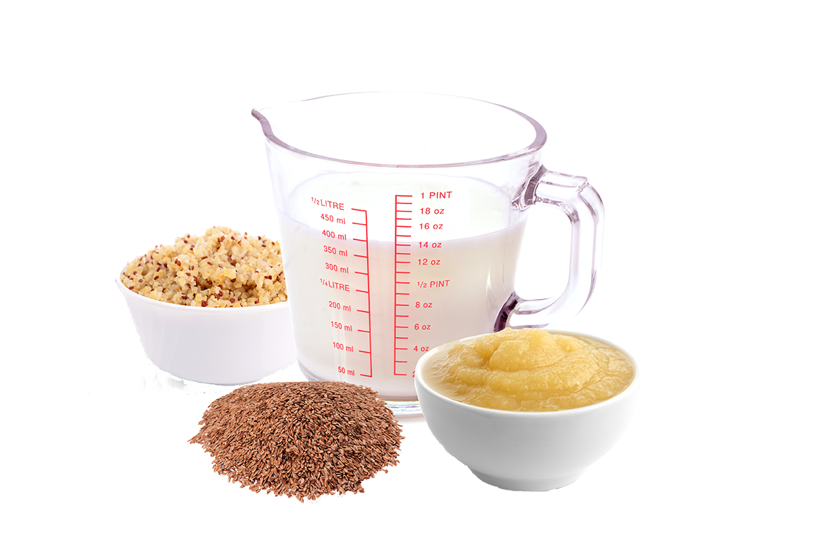 - Environ ¼ à ½ tasse (60 à 125 ml) peut être ajoutée aux recettes qui utilisent un contenant de préparation COMPLEAT®. Par contre, vous pourriez constater que l'ajout d'eau n'est pas nécessaire.